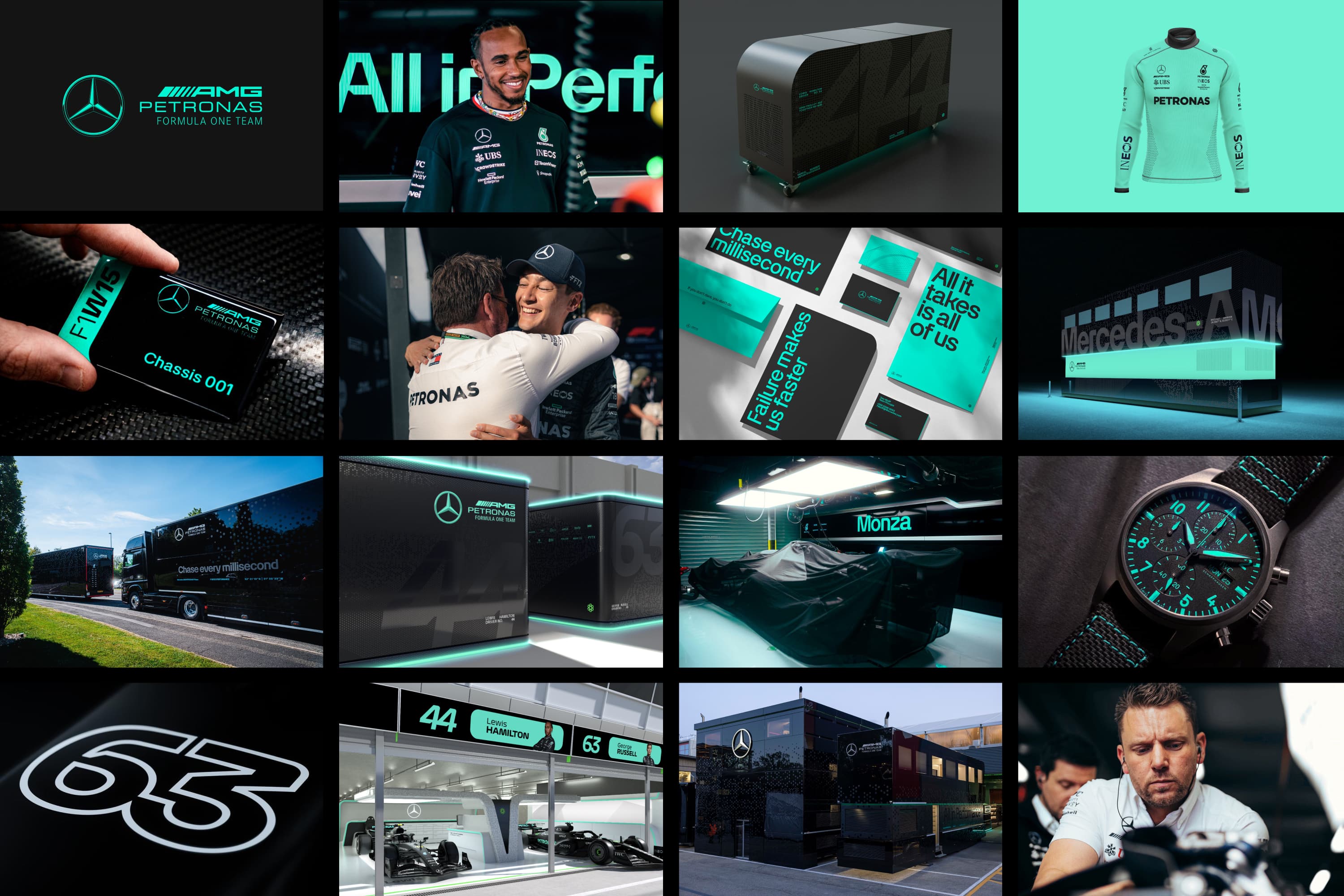 We defined ‘All in performance’ as the team ethos; a shared mindset to unify employees, sponsors and fans around the drive to strengthen performance. This idea informed the way the team looks, feels, acts and moves. In collaboration with Mercedes-AMG Petronas F1 Team’s designers, we built a dynamic visual and messaging system.